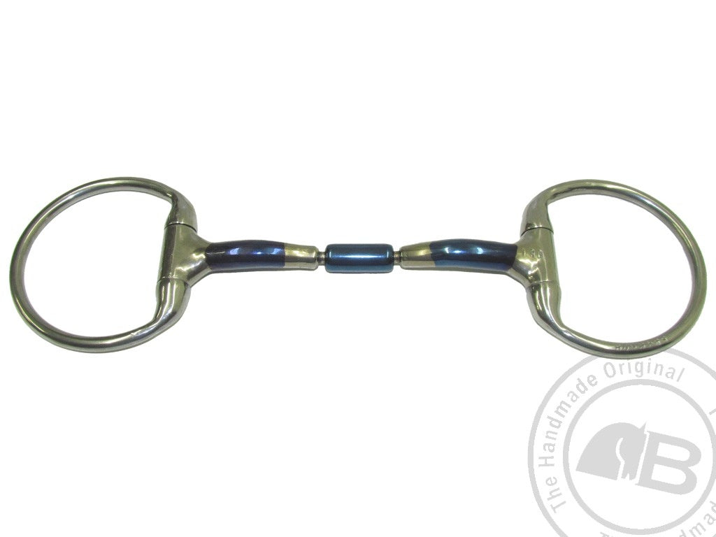 A conventional Snaffle joint has a nut cracker action, which means it will bear pressure on the horse's bars and the tongue. The Barrel joint limits the nut cracker action and spreads the usual pressure over a larger area. When the rein is used this mouthpiece wraps across the tongue creating tongue pressure and taking pressure off the bars due to the lock up action. Please note appearances may be deceiving, this bit joint is stronger than the Elliptical as pressure is more concentrated on the tongue as this joint is smaller.