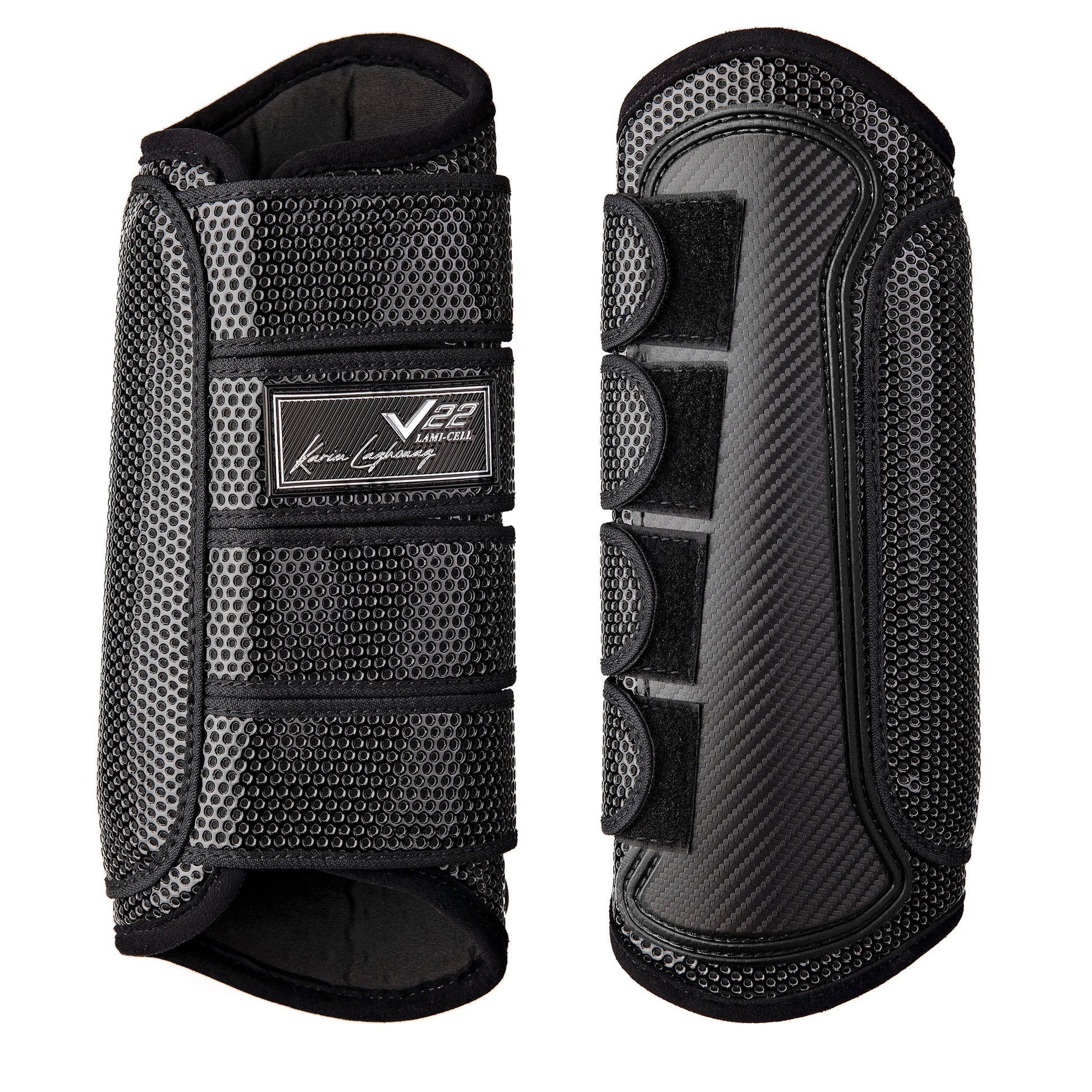 V22 Eventing hind boots, ventilated synthetic leather, lightweight and full protection.