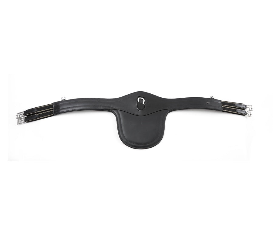 Anatomical shaping provides more room behind the horse’s front legs, decreasing restriction with the potential of increasing performance. Smooth leather panel work combined with high quality stitch lines provide a sleek, professional aesthetic. One central clip ring and two side D-Rings have been added for the attachment of martingales, breastplates and/or training aids. Finished with premium quality stainless steel buckles, this jumping girth is ideal for use on sensitive horses in everyday work or at competitions.