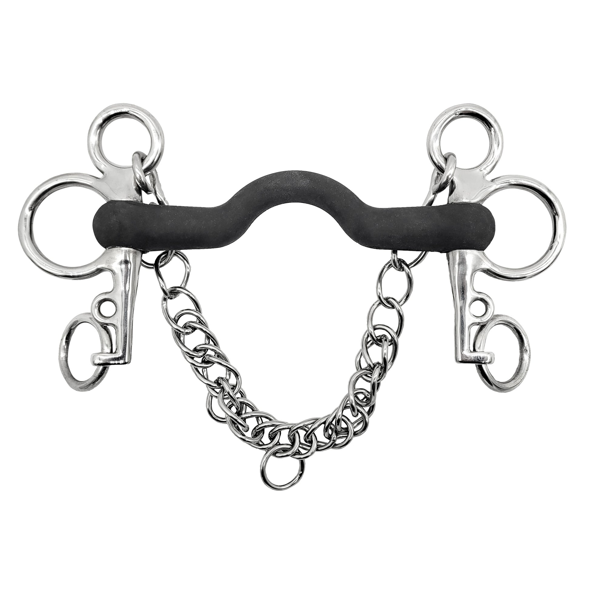 The use of Pelham Roundings converts this bit's use to a single rein only, and this reduces the normal curb action that a Pelham bit delivers.