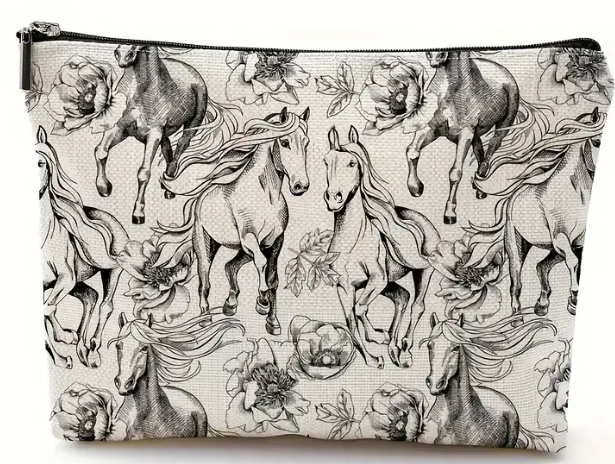 Horse Pattern Makeup Bag, Zippered Pouch For Cosmetics And Small Accessories, Toiletry Bag, Stationery Organizer, Perfect Birthday Gift